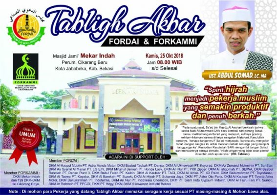 Masih menurut Agus, Tabligh Akbar dan berbagai kegiatan FORDAI ini adalah upaya memperluas keberkahan keseluruh Kawasan Industri.