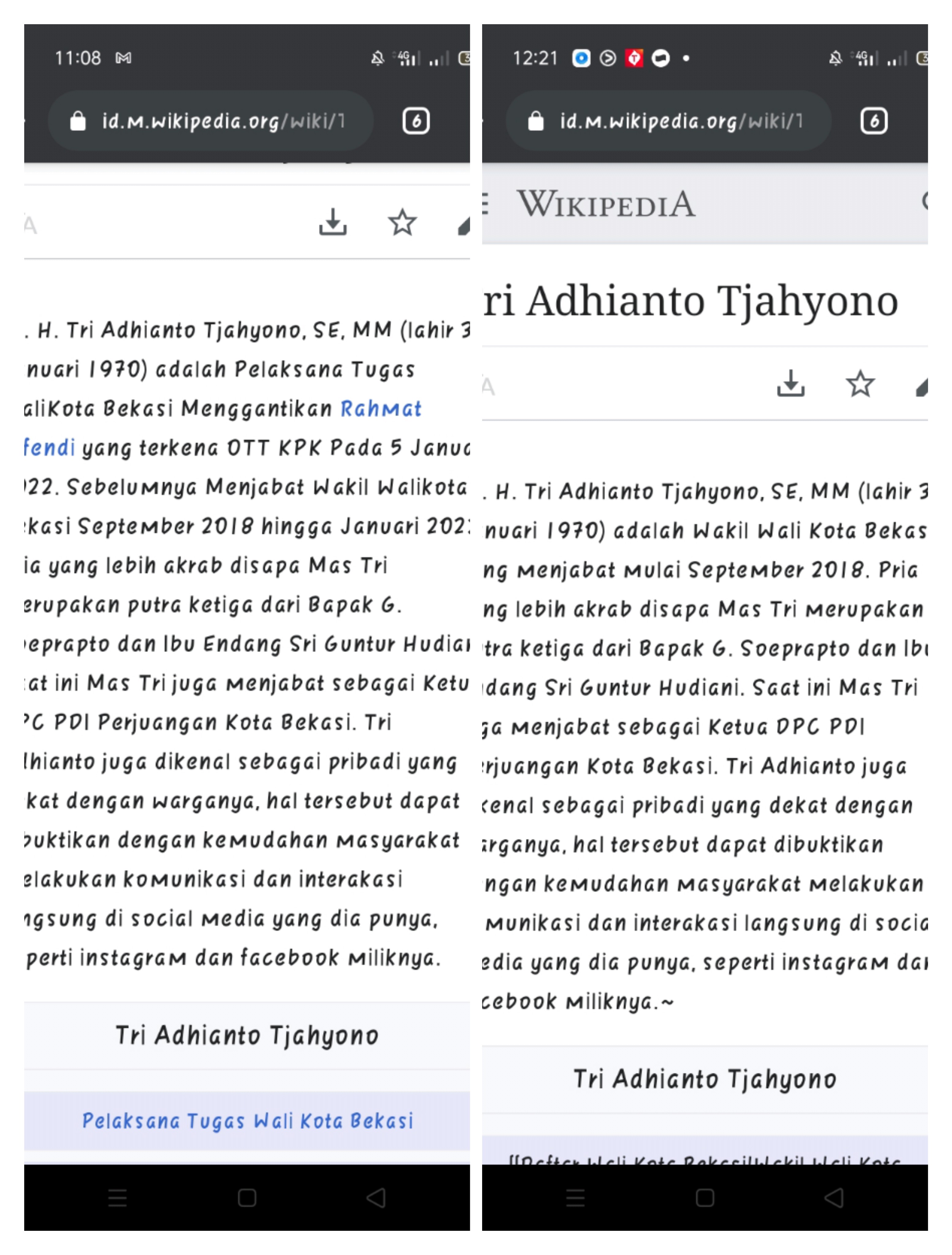 Namun pantauan Bekasimedia, pada pukul 12.32 WIB, Wikipedia kembali mengubah status Tri Adhianto menjadi wakil Wali Kota Bekasi.