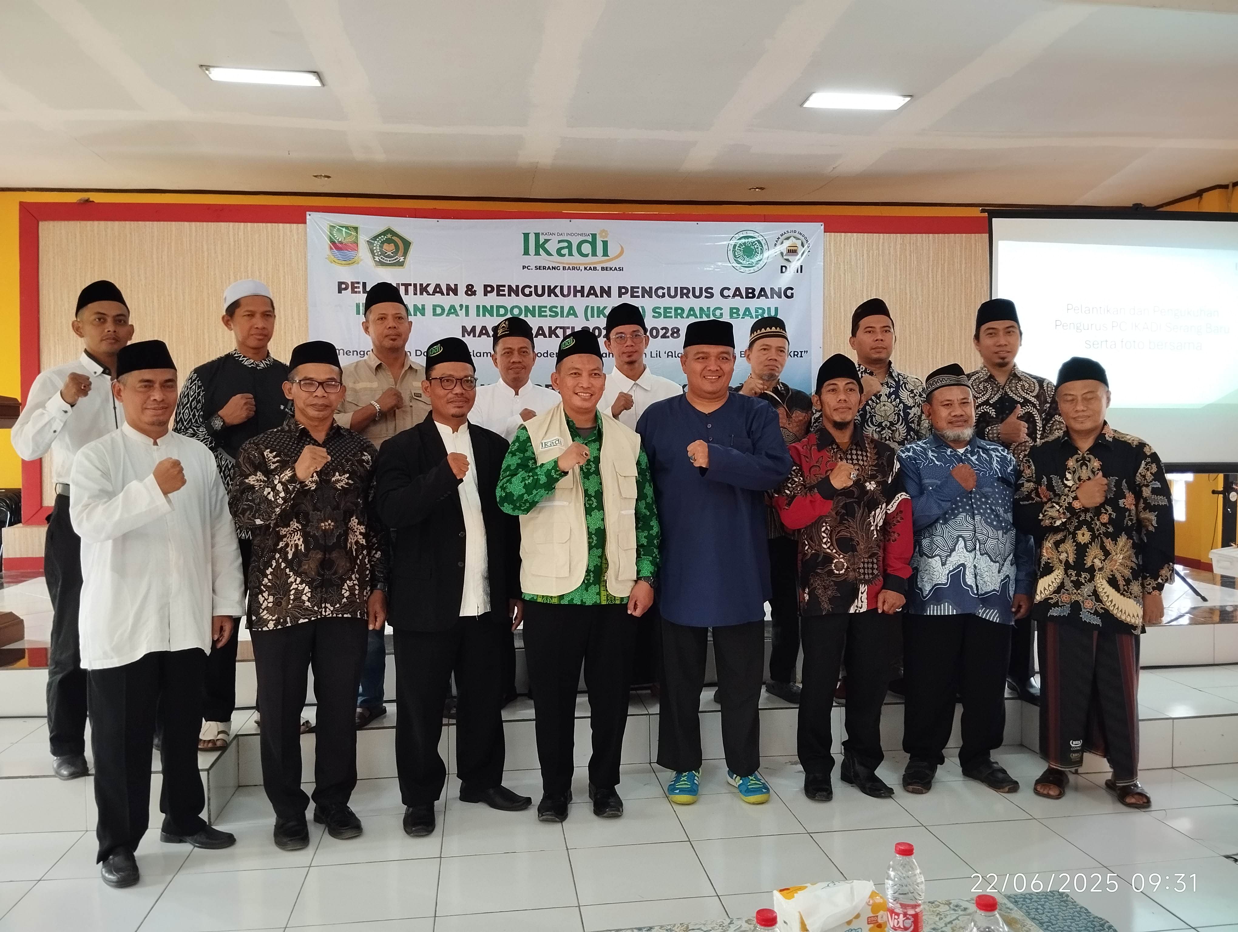 BEKASIMEDIA.COM – Kabupaten Bekasi — Pengurus Cabang Ikatan Da’i Indonesia (IKADI) Kecamatan Serang Baru resmi dilantik untuk masa bakti 2025–2028. Acara pelantikan berlangsung di Gedung Serba Guna Serang Baru, Kabupaten Bekasi, pada Ahad (22/6/2025), dan dirangkaikan dengan kegiatan Dauroh Khutoba (Pelatihan Khatib).